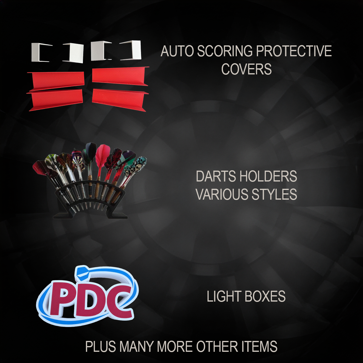 Innovative darts accessories designed and produced in-house. Custom components, unique upgrades and precision-finished parts tailored to your setup.