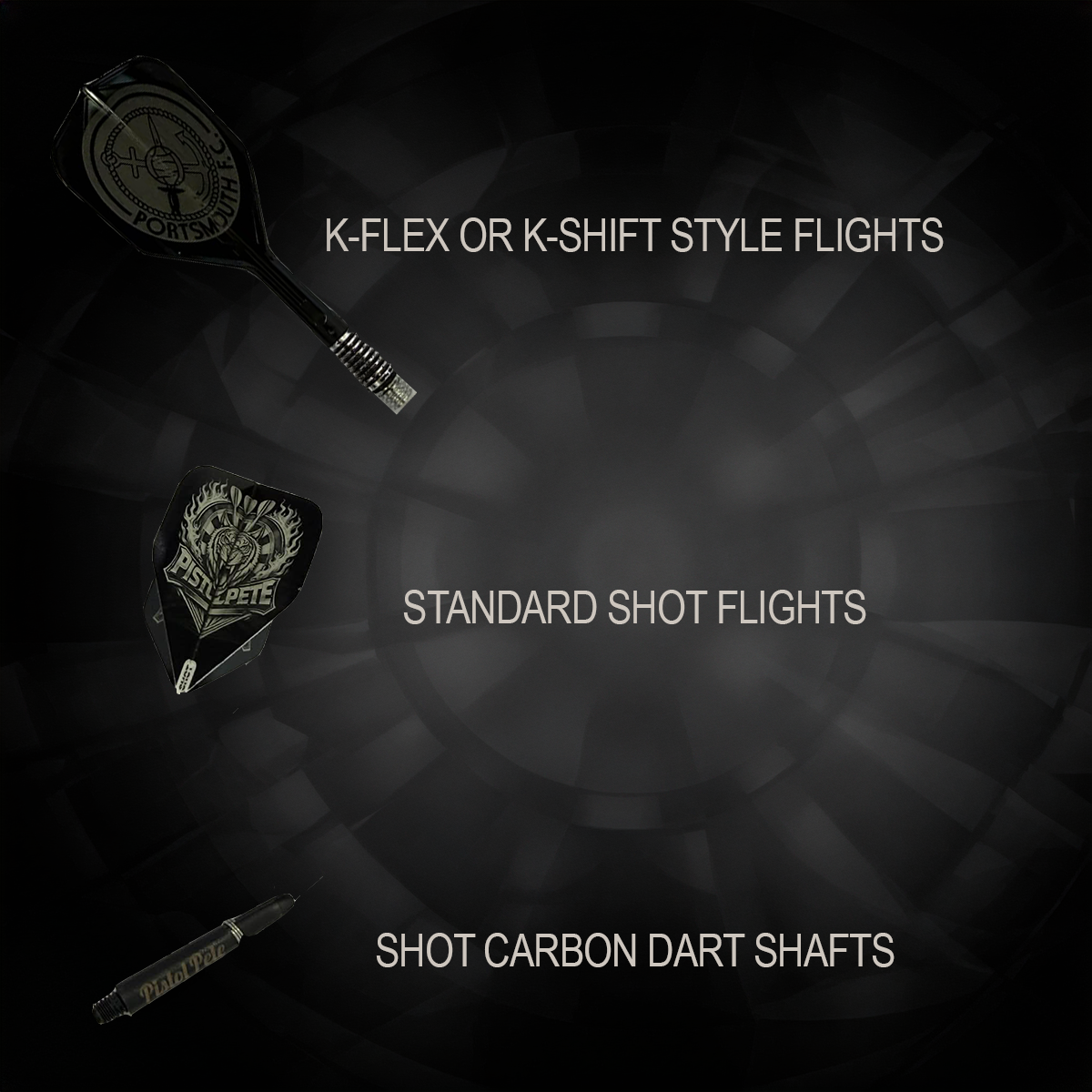 Complete your setup with quality darts, flights, stems and accessories. Whether you're upgrading your gear or starting fresh, we stock trusted essentials alongside our custom range.